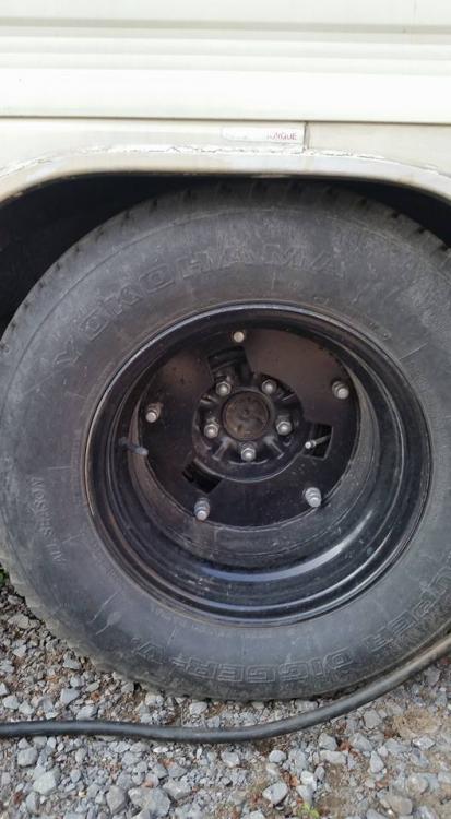 Hi everyone, I've spent around 10-15 hours on this forums and others reading about toyota motorhomes and decided they were the best choice (gaz, realiblity and price) wise. Fast answers would be great since I'm meeting the guy again the 24. They're pretty rare in quebec, canada. Today I've found one, really well maintened with a nice guy who loved it. He has in his garage the Upgraded axle (true 1 ton) 6 nuts. He is asking 4000$ cad for the rv (93000 miles) standard all in working order exept the water heater. I just want to make sure that the axle it has right now is the dangerous one ( see the photo in black) , if so I will try to discuss with the guy and find a deal, I don't want to kill my girlfriend and I if it snaps off. (He never overloded it and always checked and greased the bearing, but what about the others owners, I don't want to take any chances. Do national rv still honor their warranty? Two main questions: 1. If we change the rear axle for the safe one, are the 5 nuts in the front safe enouph ( I don't plan to overload and I will will check the bearing for any loose, grease them 1-2 time during long trips, etc). Are they hard to change in the front? 2. Any guides, info out there to help us change the rear axle? Around how many hours? He thinks he have everything we need exept a few bolts that we should be able to get from toyoto (hopefully). I'm going to meet to guy again on the 24 and depending of what kind of deal we have, buying it on the 25 if I can/or we can do the upgrade. Thanks a lot for the input and I'm looking forward to be lucky enouph to drive this jewel ( we'll do 10 000 -15 000 km in 2 months ) this summer so we want something safe. Cheers! -Emmanuel