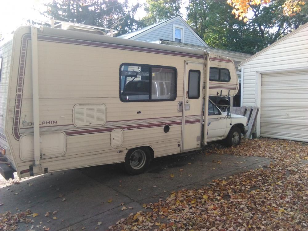 1985 Toyota Dolphin Motorhome. Owned since 1998 . Totaled by an F150 (right rear) fall of 2005. Re-man engine in 2007. Collision with a MOOSE June 15,2008 (right front) Time and pressure led to bowing and opening up a good bit. BEFORE : https://www.dropbox.com/sh/v0psst7xu30l7dw/AAAD2CG8PIJpNRIXcLxtNOm0a?dl=0