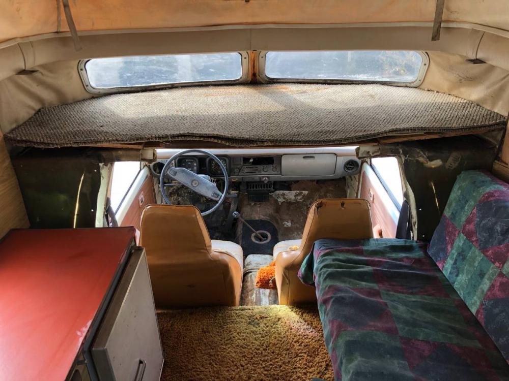 Hi. I am looking at a 1978 Toyota Hilux that someone swapped out the cabin (unknown type) with a Chinook. The cabin needs to be completely remodeled/refurbished. I am up for it, but I have a question regarding the access point for the spare tire. This Chinook does not have a "door" for the opening. Is that how all Chinooks were, no covering in the cabin over the spare tire access? Seller said that is how the Chinooks were made. I have included photos of the cabin with a black arrow pointing out the opening I am talking about. Wouldn't there be an issue of exhaust entering the cabin? Also, anyone know where to purchase a replacement canopy for the pop top and approximate cost? I am in San Diego County. Thank you for any and all advice!