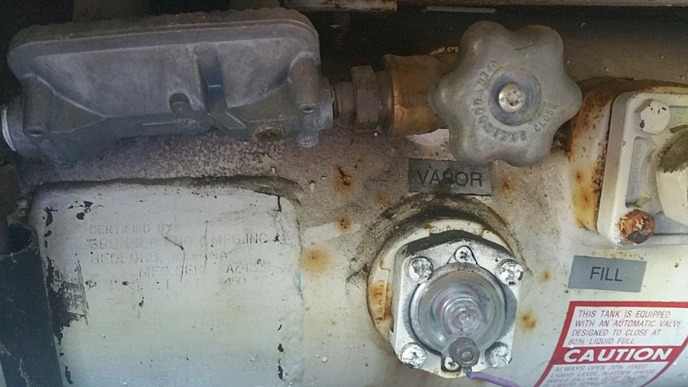 What's up guys - I turned on my propane tank for the first time and noticed a cracked cap on the right side of the handle that turns on the propane. It pretty much disintegrated as soon as I touched it. I turned on the propane and it seemed like propane was spewing slowly but surely out of this spout that the cap once covered. I have never dealt with propane so I am not sure if it just needs another cap or something else is missing. Any help is appreciated..I am moving into this rig on the 1st so I am cutting it close. Thanks in advance.