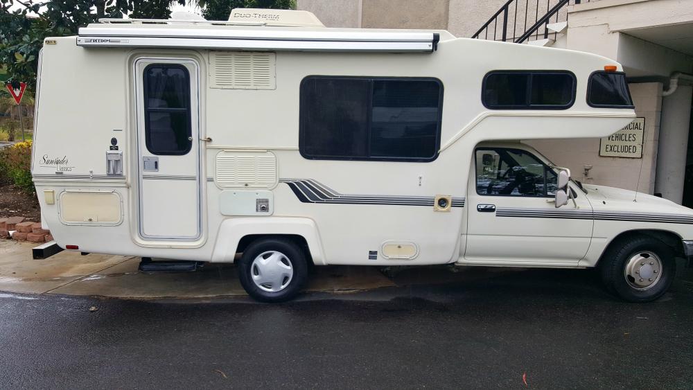I have been lurking and looking for months for a Sunrader. I finally found one in California with only 52000 on it, 1990, V6. I flew out last week to look at it. The guy I bought it from had no clue about motorhomes. He said he used it as a bunk house on the beach. He never turn on the frig, stove or water pump. I spent a day checking everything out and to my surprise everything worked. Propane valve leaked and we took it to a propane supplier and they repaired it for $60. The seller paid. So, I bought it and began my trek home. I was hoping to make it home on the tires but only made to Winslow, AZ. Blew the right outside rear. Fortunately I called Discount Tire in Flagstaff and they had 6 Yokohama 185 Class D 8 ply in stock. They said they see a lot of Toyota MH in the area and stock the tires for them. First thing I am tackling is the timing belt and shocks. Plus, of course, the basics, belts, fluids, and a more thorough inspection. But I made it home 2700 miles at an average of 16mpg. So, I am a happy camper. I have rebuilt old trailers but this is my first motorhome. This one I am doing for me. I work all summer ( I own a state park concession.) and only get to vacation in the fall and winter. I am planning to set this up for cold weather. I am a photographer and want to be outside getting picture. Hotel rooms ae to expensive and I get tired of hauling gear to the 4 runner. I was a mechanic in a former life and actually worked at a Holiday Ramble dealership when I was in my 20's. About 40 years ago. I am looking forward to this build out and plan to seek a lot of advice here. I will try to post what I am doing.