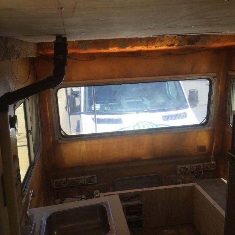 Hi everybody, This forum has been really great for finding info and answering several of my questions, so I figured I’d post my predicament and ask for your sage advice. I recently acquired a 1984 Sunrader 18’ with the 4-cylinder 22R engine and a 4-speed manual transmission. The odometer reads about 191,xxx miles, tho I have a receipt that says the speedometer (which includes the odometer) was replaced in 1998 or so. The exhaust was completely replaced by the previous owner from the catalytic converter on back, and the carburetor is freshly rebuilt. Previously it had a leak in one of the window seals which led to rot in the cabin that led the previous owner to “gut” it. Basically, all the systems seem to be functional (tho I haven’t successfully tested them all yet), but the interior has just a rough wood floor, some new wood ceiling, and a lot of exposed fiberglass. The only interior features that seem to be original are the over-cab bed, bathroom, closet, fridge and paneling that holds it, the kitchen sink, stove/oven and the paneling that holds them. Also, I still have the cushions for the dinette, tho some of them could use new upholstery. I’m beginning to think I’ve gotten in over my head. So far, it seems the fresh water tank has a leak (see photo) but maybe the winterization valve is open? The fridge works on 12v, but I haven’t tested it on propane or AC. I haven’t yet managed to fire up the furnace, water pump, or hot water heater, tho I believe they’re fine. I’ve gotten water from the sink, the toilet flushes, and the shower runs but leaks near the knobs. However, the bathroom/shower floor doesn’t seem to be draining, tho the panel says the grey water tank is empty. The rear dually axle, wheels and tires seem to be great, and the front wheels and tires seems fine as well. There are three batteries under the hood. In addition to the usual 2, there’s a Harbor Freight Thunderbolt “Solar” batter mounted near the passenger corner which is attached to a weak solar panel on the roof via a questionable Harbor Freight solar charge regulator. Also, every morning there seems to be dampness under the cushions in the over-cab bed. Finally, there is no spare wheel/tire or jack. Oh, and have I mentioned that I’d need to install walls and insulation? Meanwhile, my own skill set is lacking: I’m a computer geek, not a handyman, tho I’d love to learn how to fix/build all these things. So, my question is: should I proceed with the renovation, and learning all the skills involved? Or should I sell it to someone who has the requisite skills and buy another Sunrader that’s closer to plug&play? One option I've found nearby is a 21' Sunrader that's pretty much ready to go but it has the fooly 5-lug rear axle. Thanks!