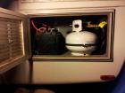 Over the past 3 months (since the axle swap) we've been prepping our little Sunrader for her maiden voyage....wanted to share our updates (mostly genaric) if only to provide ideas for others Sandblasted, repainted all wheels and hot water heater cover(hi-temp Rustoleum inside). All new Hankook RA08 (including the 5-lug spare) and a new gravity-fed water inlet (white circular - Camping World Item# 60332)...oh and front marker light assys. (Oreillyauto.com - Part # : 18-1153-50 & 18-1153-90 | Line: TYC) Our Sunrader had a Engine Bay-mounted size 24 house battery, so I rerouted it to the rear using 4ga battery cable and increased it to a size 29. Our original 20# Propane tank had been incorrectly modified with an OPD valve, so it was removed and replaced with an 11# (True Value item # 839316) vertical tank. I also added a 12ft hose extension so that the hose can be connected to an external 20# vertical BBQ style tank when stopped any extended length. Here you can see the coiled hose, remounted regulator, and in-line propane tank gauge (CampingWorld Item # 55643). I used the existing 8ga wire with auto-reset circuit breaker run to the Converter, and used 1ga run through the box using rubber grommets (Oreilly's...can't recall part#, but fit snug around their 1ga) for my Inverter using a 150amp in-line breaker. After much deliberation, I decided to go with a NaturePower 1000w MSW Inverter (CampingWorld Item # 67195). The reasons I chose this Inverter were: 1) It was cheap (even more so because I had a $25 one off one-item coupon) 2) It had GFCI, LCD, and Remote Switch 3) I could purchase (and return to, if necessary) from a physical store 4) My requirements were minimal - Microwave (5-10min./day max), Work Laptop, Cell phone, occasional power tool - it handles all of these without issue. Until I decide on which way I will wire it's power, I have simply attached a 8ft 10ga extension cord. I also purchased and mounted a generic Inverter switch (Napaonline.com Part Number: BK 7821734) which was surprisingly a bit of a PITA, but functions as it should. The microwave we are using is a GE 1kw (listed draw, output unknown but probably 700watt) that was my wife's from college which I didn't expect to work, but does and draws 750watts during usage according to the inverter's LCD. However, I did have to "modify" the feet posts using a ball-peen hammer so the cabinet door would clear the top of the microwave. In the left of that picture you can see collapsible storage bins my wife found at WalMart ($6/ea.) which fit perfectly behind our factory table (as there is no way in h___ a full-size human could sit back there comfortably). In the closet we took some advise from another in this forum (sorry i was never good at citing sources) and use an LED tap-light with auto shut-off. Also found some rubberized clothes hangers that don't rattle around when on the move. In the "Triple S" as I call it (because you could do all 3 at the same time), I replaced the vent with a new darkened one, the shower/faucet with an oxygenics kit, sanded/repainted/resealed the floor pan (used "Almond" Rustoleum appliance epoxy - a perfect match), and replaced the shower curtain. All works well, though the Oxygenics uses more water than I anticipated based on other's reviews. Installed Allure flooring (HomeDepot - Internet #202885489 Corsica Dark) which conveniently took 1 box +1 plank....But turned out nice and trimmed with painted pvc 1/4round and dark brown rubber transitions. In lieu of clearance lights, I used adhesive backed clearance reflectors (Oreilly's generic oblong). I went this route for several reasons: 1) My clearance light wiring was in disrepair, and I had neither the time or patience to replace/repair it 2) It was much cheaper ($1/ea, compared to $? to replace and rewire) 3) They seal flush, water tight (holes/screws filled with silicone), and generally look "cleaner" 4) I fail to see the point in these on RVs other than to be an incessant PITA to owners - I read extensively of Truckers removing there's to cut down on DOT issues....basically if they ("cleanly") aren't there, no issue - if they are and are non-functioning, ticket. I fell somewhere in between, so if/when I am stopped/ticketed I will remove and fiberglass to a "factory" look.....rant over. I removed the aluminum garbage that was riveted to the bumper (under which serious rust was forming), wire wheeled, rust-treated, and painted flat black. The trailer hitch was installed by the previous owner to pull a small john boat (no, there is no frame damage and the mounting appears structurally sound, although I would never attempt the same...especially with the old 5-lug axle it had), but I rust treated and black-glossed it and installed a cheap $60 cargo carrier to hold folding chairs, a dry-box, and perhaps a small generator - If I go that route. MISC UPDATES: 1) Installed additional Shower outlet in the J-drain to optionally bypass the black-water tank with a garden hose. 2) Re engineered the under-sink shelf so more storage real estate is available. 3) Treated the water-stained tweed headliner with Instagone (worked great! stains had to be 15+ years old, pretty much unnoticeable now) 4) Replaced misc. fan/drive belts with Gates. 5) 4" Memory Foam mattress topper and waterproof mattress pad..............I'm sure there's more... Getting closer and closer to a state of near-doneness (as it seems one can never be completely finished with these old toyhouses). I still plan to: *Fix Exhaust Manifold leak....ugh.... *Install a smarter/quieter water pump *100watt Solar system (still on the fence on this one) *New smarter Converter (it still has the original and glass fused board...this may be hired done at CampingWorld as it looks like a PITA to do the board....we'll see). *Etc., Etc., Etc.... Will post more as they happen, thanks again to everyone who contributes here; it has saved me countless hours of work and research. -Patrick
