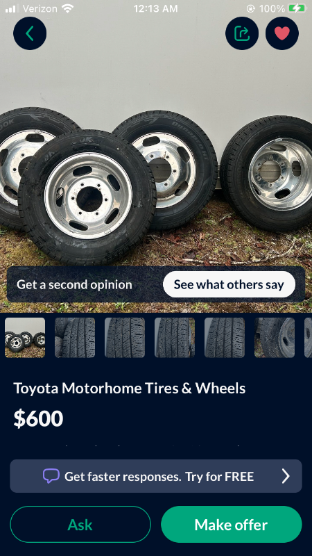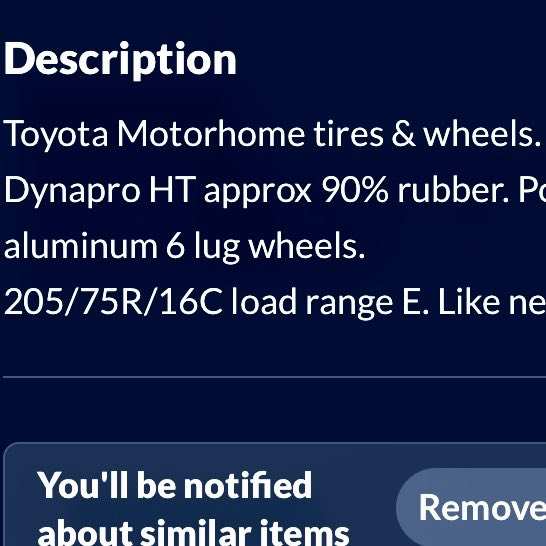 Robertseattle Posted November 10 Posted November 10 Hello all! Ā New member here. Ā I recently bought a 1992 seabreeze with the DRW and 6 lug axles. Ā I was thinking about getting backup rims and seen these for sale and wondered if they would fit. Ā Seems they are bigger than the 185r14 which is on the MH. Ā Any help would be appreciated. Ā š¤š» Quote
