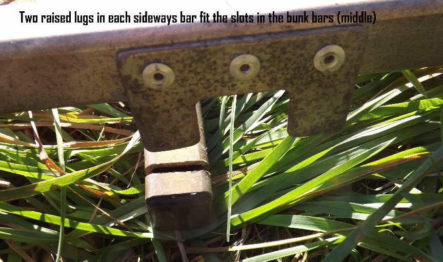 zero Posted September 5, 2013 Posted September 5, 2013 Some photos. There are quite a few parts. Each bunk - kind of a fabric hammock has a long square-tube steel bar on each side the runs the length of it. So, two bunks with four bars. Those bars attach to a pair of steel bars that run sideways across the ceiling area. Those two sideways bars attach to the perimeter via four flat steel brackets. Quote